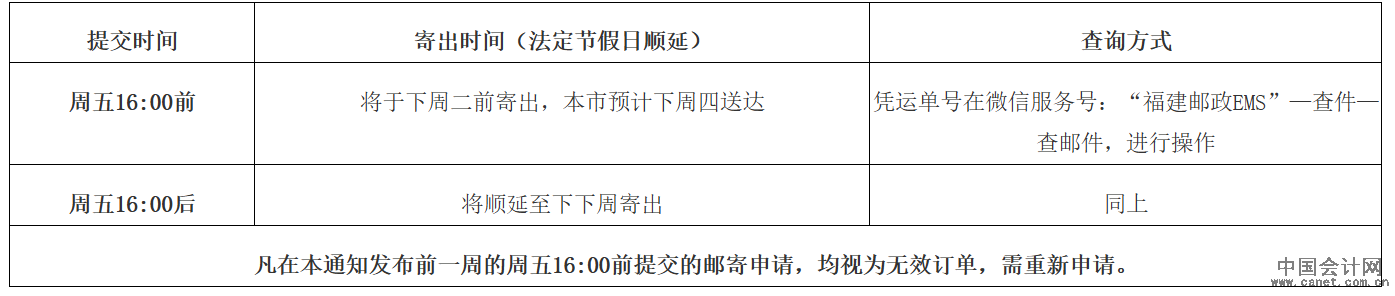 1.提交郵寄信息60分鐘內(nèi):如需修改信息或者查詢郵件單號,請通過微信服務(wù)號:“福建郵政EMS”——查件——個人訂單——委托郵寄,進行操作;信息提交成功60分鐘后,如需修改信息,請重新掃描二維碼填寫申請信息并提交訂單。