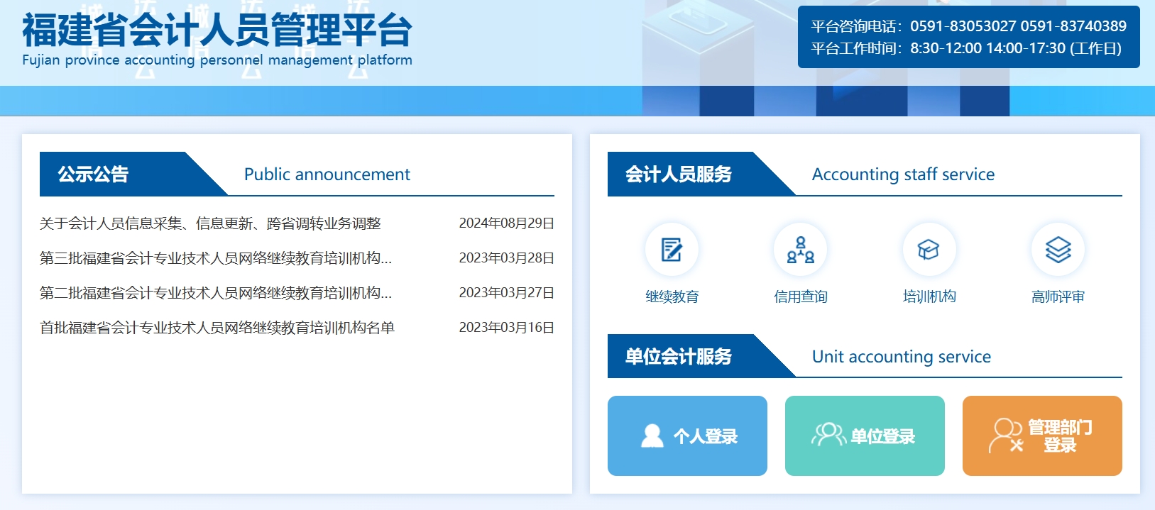 目前全國會計服務(wù)管理統(tǒng)一平臺上線,需要登陸統(tǒng)一平臺完成信息采集,福建地方采集入口已經(jīng)關(guān)閉。繼續(xù)教育學習路徑不變。點擊進行采集
