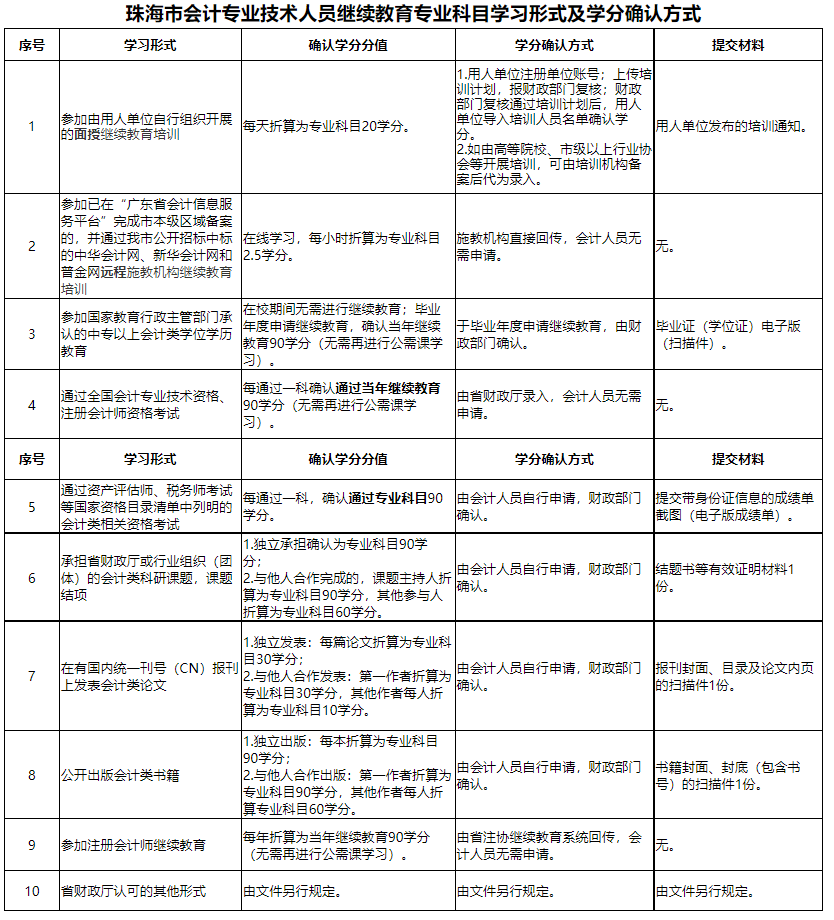 附件:珠海市會(huì)計(jì)專業(yè)技術(shù)人員繼續(xù)教育學(xué)習(xí)形式及學(xué)分確認(rèn)方式