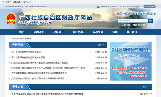 廣西壯族自治區(qū)財(cái)政廳會(huì)計(jì)管理專欄網(wǎng)站