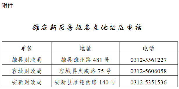 附件:雄安新區(qū)各報名點(diǎn)地址及電話