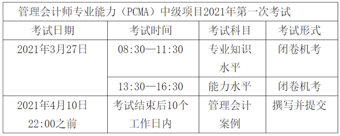 中國(guó)總會(huì)計(jì)師協(xié)會(huì)關(guān)于管理會(huì)計(jì)師專業(yè)能力(PCMA)中級(jí)項(xiàng)目 2021年第一次考試相關(guān)事項(xiàng)的通知