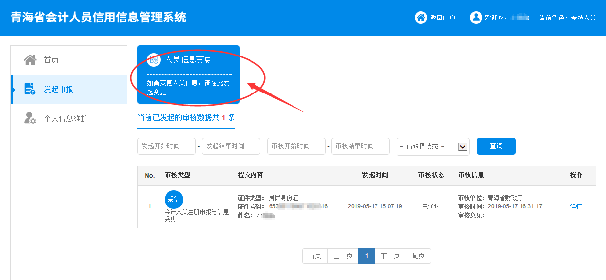 答:可以修改,但請先確認目前的審批狀態(tài)是否處于待審批中。若狀態(tài)是待審批,暫時無法修改信息;若審批狀態(tài)是通過、不通過或者被駁回,將可以點擊“發(fā)起申報--信息變更”界面發(fā)起修改后再次提交審核即可。