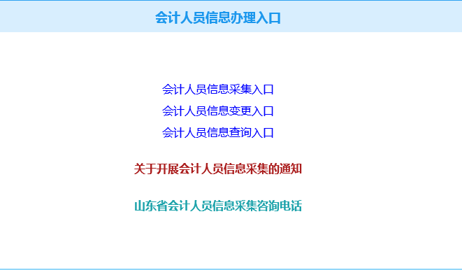 (一)會(huì)計(jì)人員登陸山東省財(cái)政廳網(wǎng)站(http://czt.shandong.gov.cn/),點(diǎn)擊右下角“山東會(huì)計(jì)管理”專題頁(yè)面,“進(jìn)入“會(huì)計(jì)人員信息采集”入口,根據(jù)說(shuō)明和提示注冊(cè)并填報(bào)相關(guān)信息。