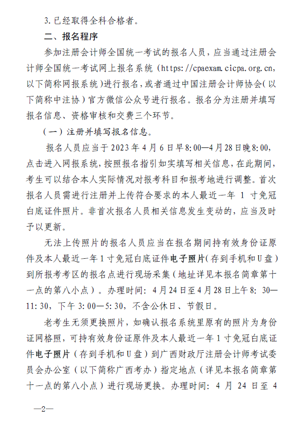 附件:2023年注冊(cè)會(huì)計(jì)師全國(guó)統(tǒng)一考試廣西考區(qū)報(bào)名簡(jiǎn)章(點(diǎn)擊下載)