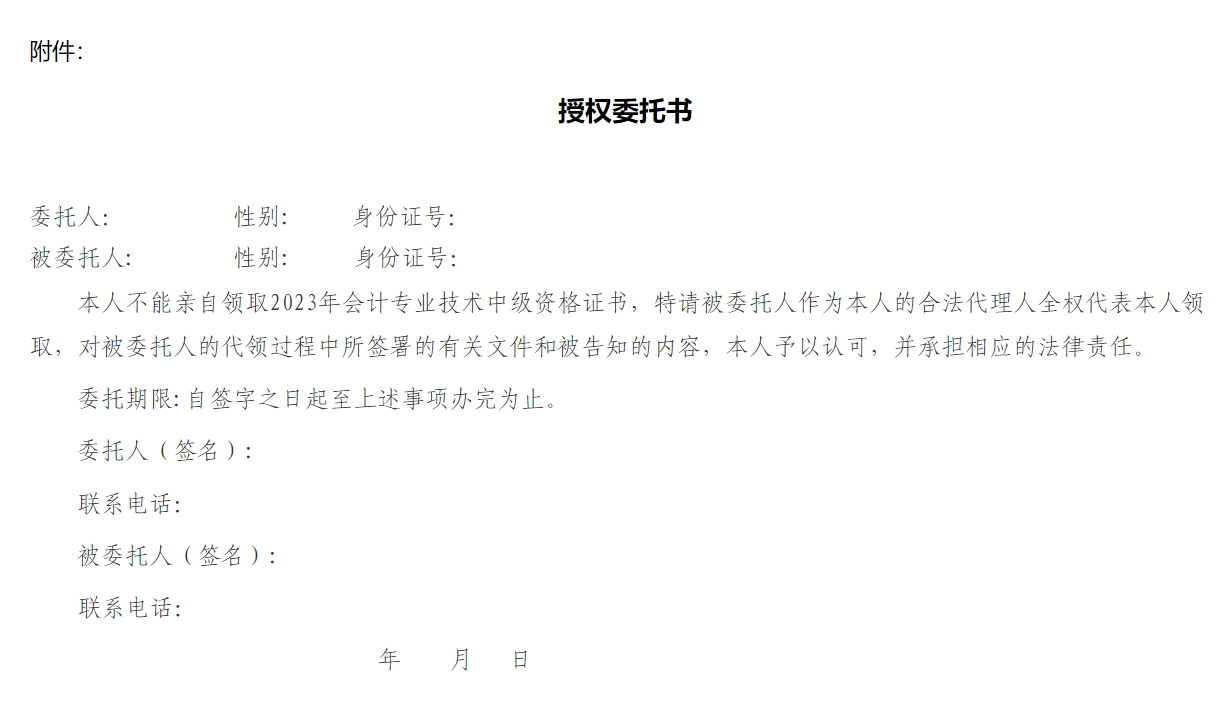 需現(xiàn)場領取證書的考生,請攜帶本人身份證原件到新余市財政局領取。如委托他人代領,請攜帶應試人員身份證原件、委托人身份證原件及授權委托書(見附件)。